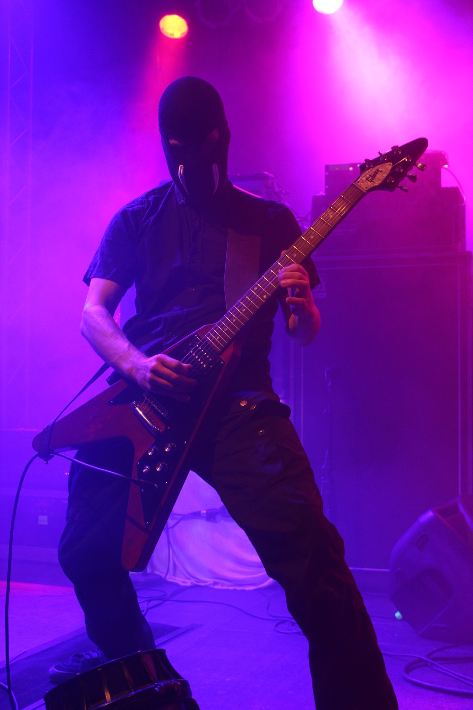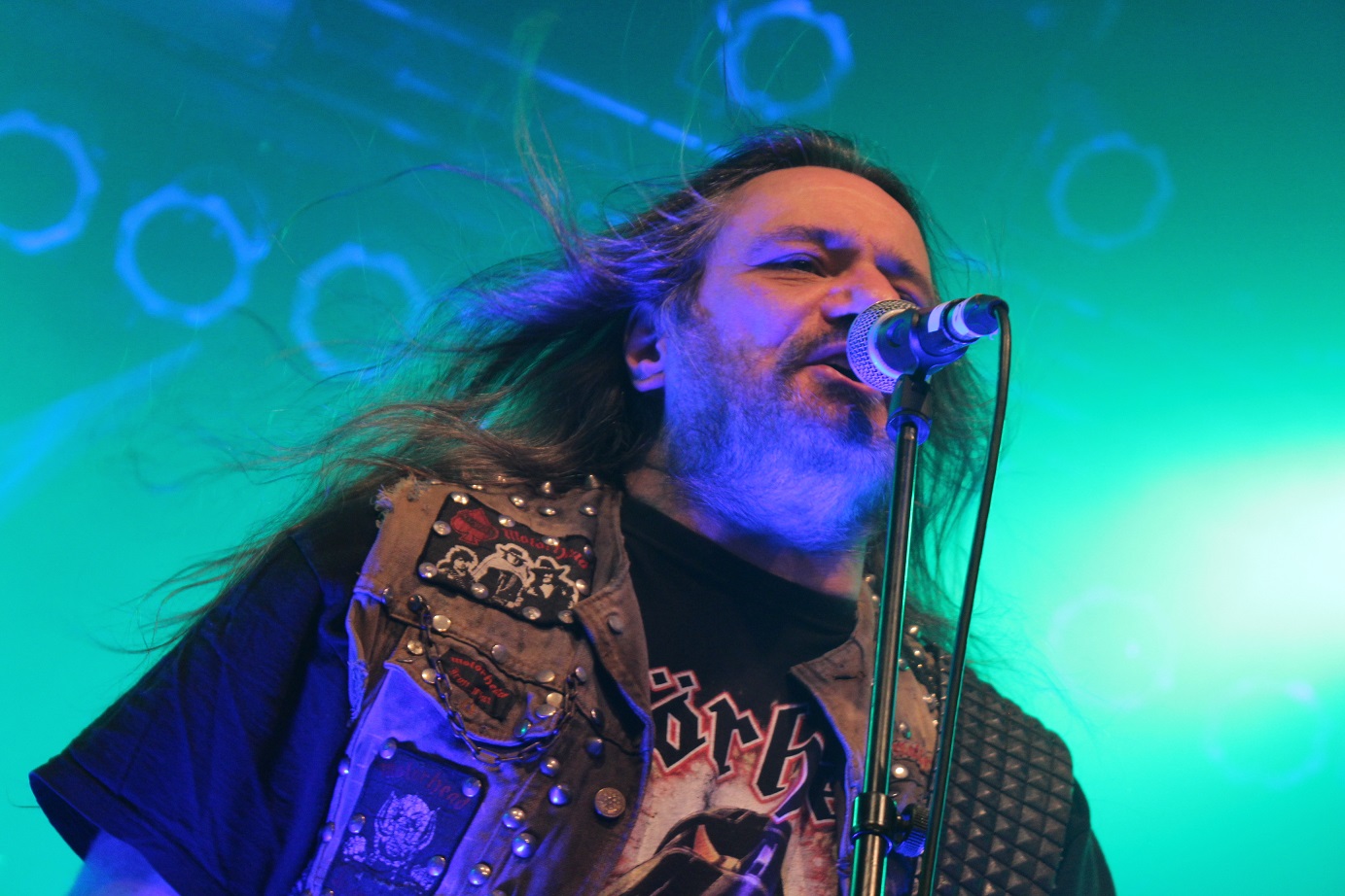 Die nächste Überraschung folgt mit ACCU§ER. Das deutsche Urgestein aus dem Siegerland erlebt gerade seinen dritten Frühling und obwohl die Thrasher seit 1986 eine beachtliche Diskografie vorzuweisen haben, sind Accu§er doch immer an mir vorbei gegangen. Schon mit den ersten Tönen fühle ich mich um 20 Jahre zurück versetzt. Das ist Thrash alter Schule, technisch anspruchsvoll und filigran, mit einer progressiven Note. Titel wie "Who Dominates Who" oder "Cannibal Insanity" gehen einfach ins Genick und in die Beine, insbesondere, wenn sie mit einer solchen Spielfreude wie am heutigen Abend vorgetragen werden. Mit "Mission Missile" gibt´s sogar noch einen neuen Song vom Anfang 2018 erscheinenden, neuen Album zu hören. Eine bärenstarke Rückkehr, die vom altermäßig bunt gemischten Publikum gebührend honoriert und gefeiert wird, sind doch erfreulich viele Jungspunde, die sich heute Abend für den Sound der ganz alten Schule zu begeistern wissen, anwesend.