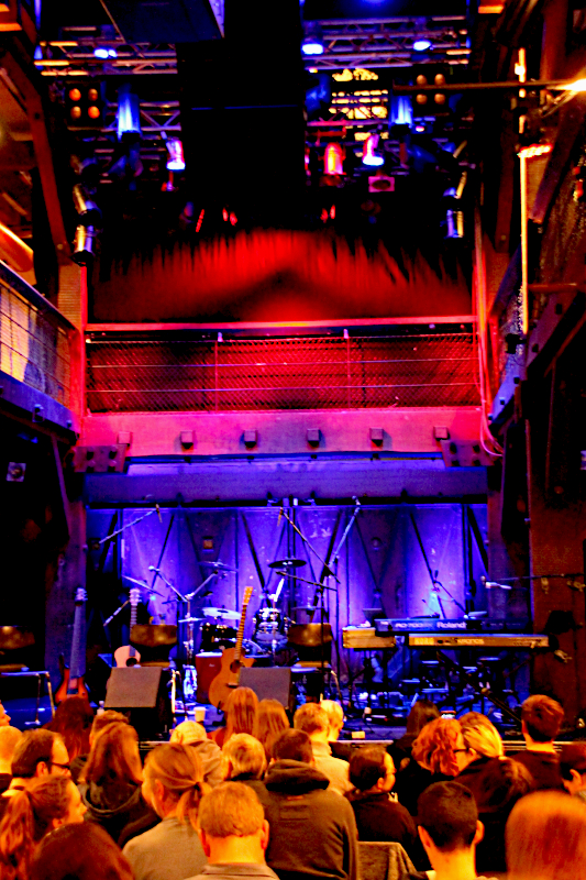 „Gleich hinterm Elbtunnel fängt der Wilde Westen… ähh… Finnland an.“ So oder so ähnlich hatten es TRUCK STOP, glaube ich, mal besungen. Tatsächlich liegt die Fabrik im Hamburger Stadtteil Ottensen verkehrsgünstig für A7-Reisende direkt hinter dem Elbtunnel in einem lebhaften Kiez. Ich hatte in fast 30 Jahren Konzertbesucherei noch nie von dem laden gehört und war nun positiv überrascht. Gemütlicher Industrie-Style mit Wohnzimmeratmosphäre erwartete uns, als wir pünktlich um 19 Uhr in die heiligen (bestuhlten) Hallen eingelassen wurden und uns einen Sitzplatz in der zweiten Reihe sichern konnten: Perfekten Blick auf die Bühne, Rockstars zum Anfassen und direkte Soundbeschallung inbegriffen.