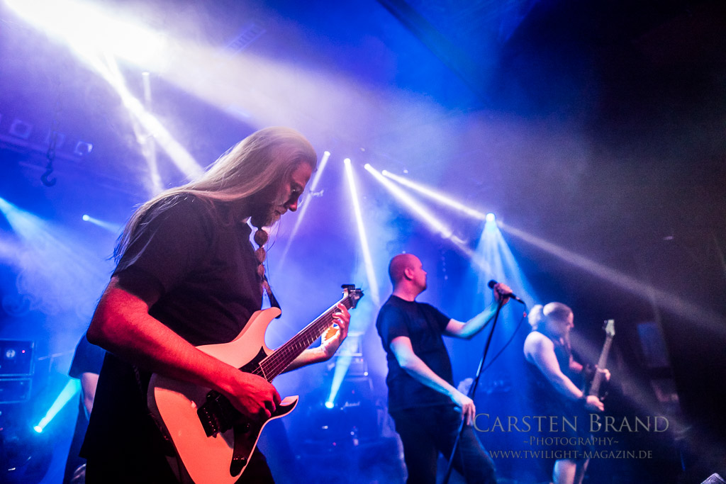 Doch auch Saturnus legten noch einmal eine Schippe drauf. Das From Hell bietet eine hervorragende Lichtanlage. Gepaart mit einem maßvollen Einsatz an Nebel verwandelt sich so die Bühne in eine hervorragende Kulisse. Wieder geht es düster-schwer zur Sache. Die etwas größere Bühne verschafft den einzelnen Musikern mehr Platz und es ist mehr Bewegung in der Bühnenshow zu verzeichnen.