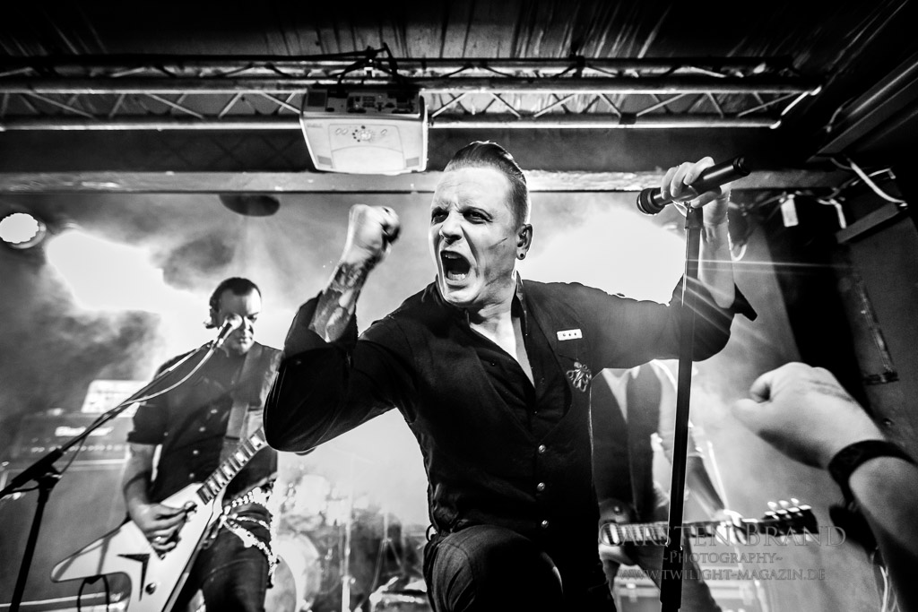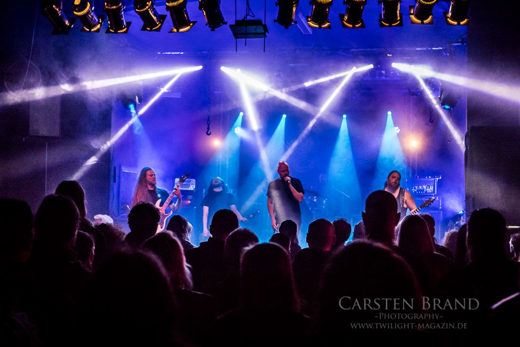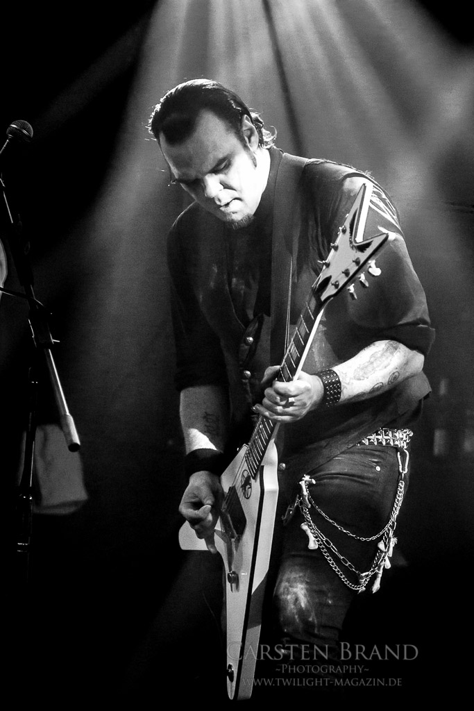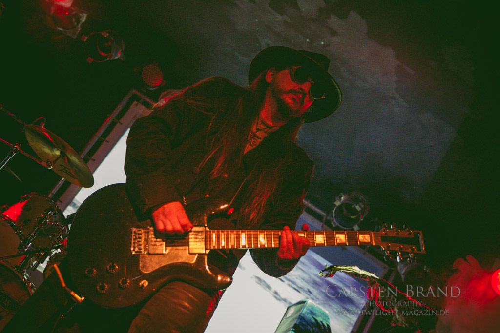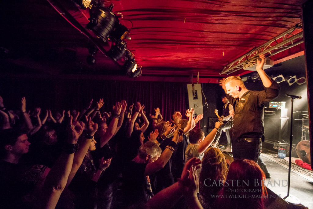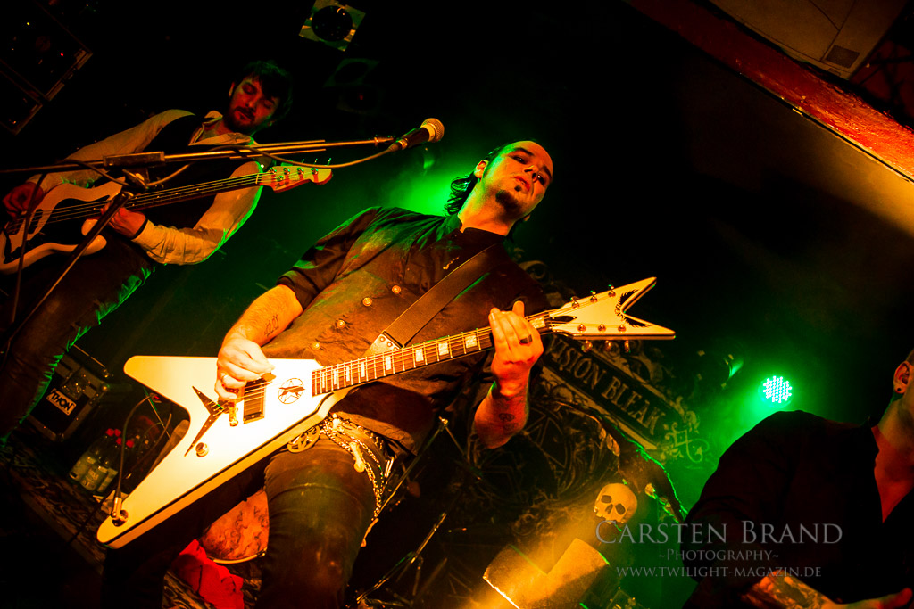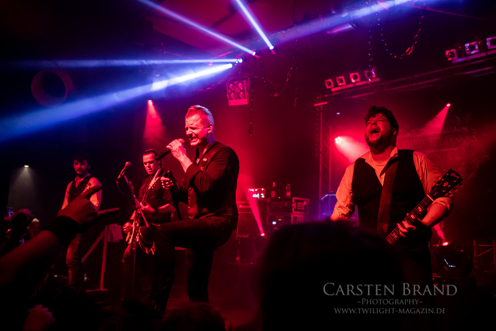Nach kurzer Umbaupause wird es ein wenig voller im kleinen Marx und es ist Zeit für den Headliner. THE VISION BLEAK haben die Arbeiten zum neuen Album gerade abgeschlossen, eine EP gibt es bereits am Merch in Vinyl und CD Form zu ergattern. Passend dazu kommt die INTO THE UNKNOWN -Tour daher. Mit sichtlicher Spielfreude und einer gehörigen Portion Motivation betreten die Herren Schwadorf, Konstanz und Co die Bühne. Mit „Spirit oft he dead“ geht es hinein in eine schaurig schöne Setlist. „Night oft he living dead“ ist zwar eines der älteren Stück, funktioniert aber immer. Neben einer perfekt eingespielten Band, ist auch das Publikum nun mehr als warm und geht fleißig mit. „The Kindred of the sunset“ war bereits als Vorab Video im Netz zu bewundern und auch live überzeugt der Titel auf ganzer Linie. Weiter geht es quer durch den Vision Bleak´schen Gemüsegarten. Eine fantastische Zeitreise aus neuen und alten Stücken, was die Fans ordentlich in Stimmung bringt. Mit „The Lone Night Rider“ schließt eine großartige Setlist und die Band verabschiedet sich in den Feierabend, nicht ohne noch fleißig Autogramme am Merch Stand zu geben.