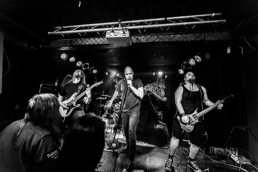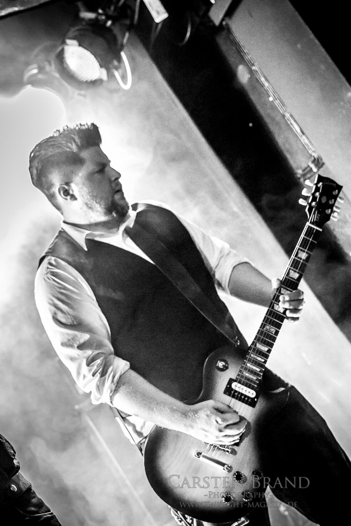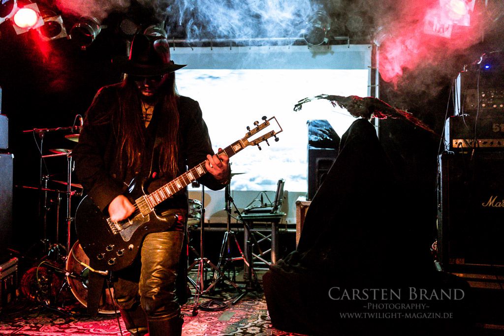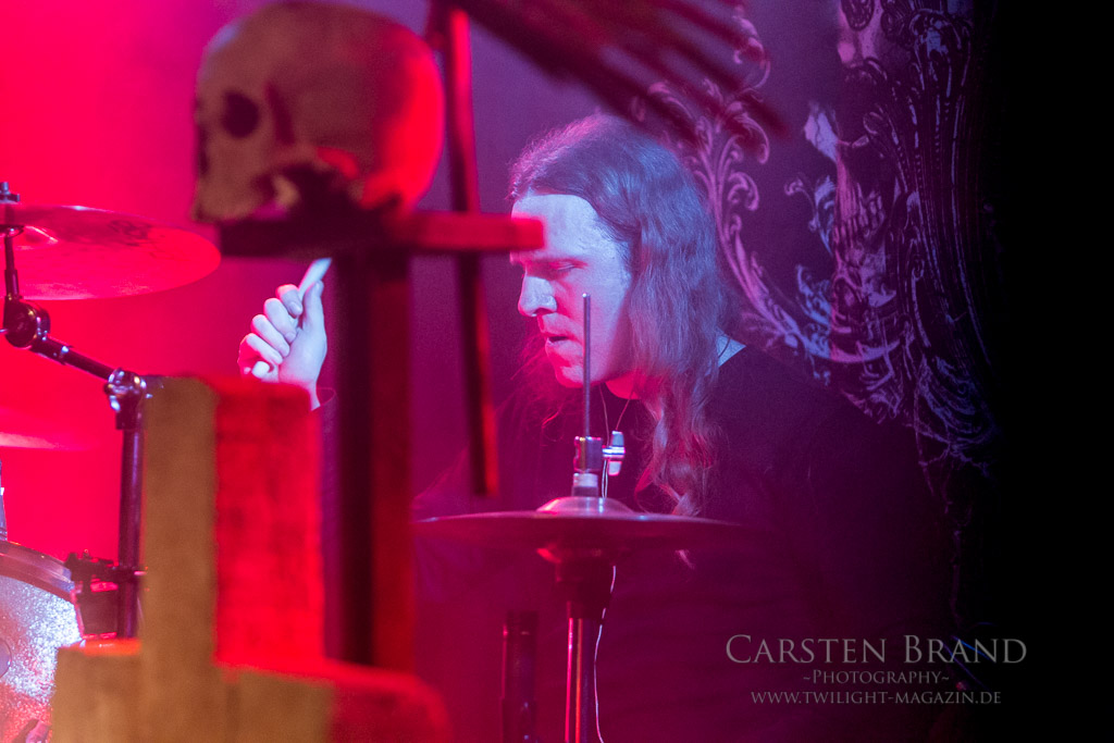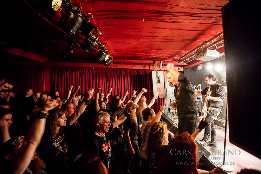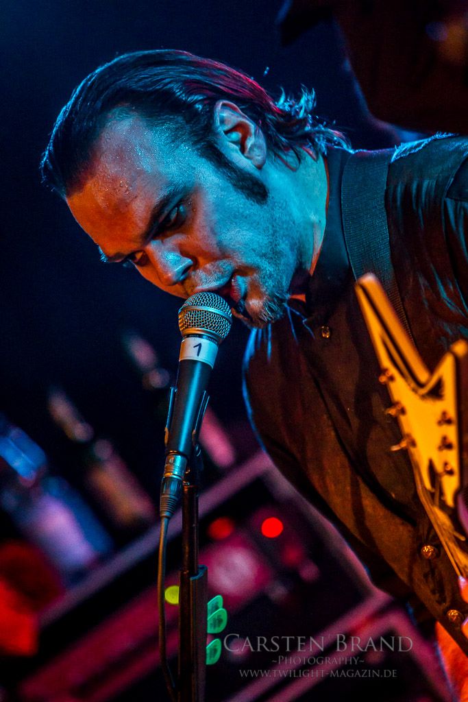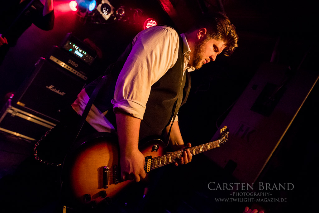 Nach kurzer Umbaupause wird es ein wenig voller im kleinen Marx und es ist Zeit für den Headliner. THE VISION BLEAK haben die Arbeiten zum neuen Album gerade abgeschlossen, eine EP gibt es bereits am Merch in Vinyl und CD Form zu ergattern. Passend dazu kommt die INTO THE UNKNOWN -Tour daher. Mit sichtlicher Spielfreude und einer gehörigen Portion Motivation betreten die Herren Schwadorf, Konstanz und Co die Bühne. Mit „Spirit oft he dead“ geht es hinein in eine schaurig schöne Setlist. „Night oft he living dead“ ist zwar eines der älteren Stück, funktioniert aber immer. Neben einer perfekt eingespielten Band, ist auch das Publikum nun mehr als warm und geht fleißig mit. „The Kindred of the sunset“ war bereits als Vorab Video im Netz zu bewundern und auch live überzeugt der Titel auf ganzer Linie. Weiter geht es quer durch den Vision Bleak´schen Gemüsegarten. Eine fantastische Zeitreise aus neuen und alten Stücken, was die Fans ordentlich in Stimmung bringt. Mit „The Lone Night Rider“ schließt eine großartige Setlist und die Band verabschiedet sich in den Feierabend, nicht ohne noch fleißig Autogramme am Merch Stand zu geben.
