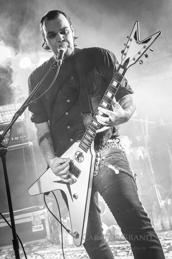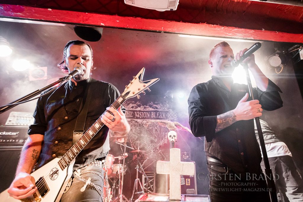 Auch THE VISION BLEAK legen einen großartigen Auftritt hin. An einem Montagabend über 100zahlende Gäste zu haben, kann sich schon sehen lassen. Der wilde Ritt durch die Biografie wird auch beim zweiten Mal in keinster Weise langweilig. Vielmehr kann man sich auf bestimmte Passagen konzentrieren, die einem am Vortag entgangen sind. Es sind die vielen kleinen Momente, die das Konzert aufleben lassn und zu etwas Besonderem machen. Nicht nur Schwadorf und Konstanz brillieren, auch der Rest der Band zeigt neben Spielfreude auch ein hohes Maß an guter Laune und Motivation.