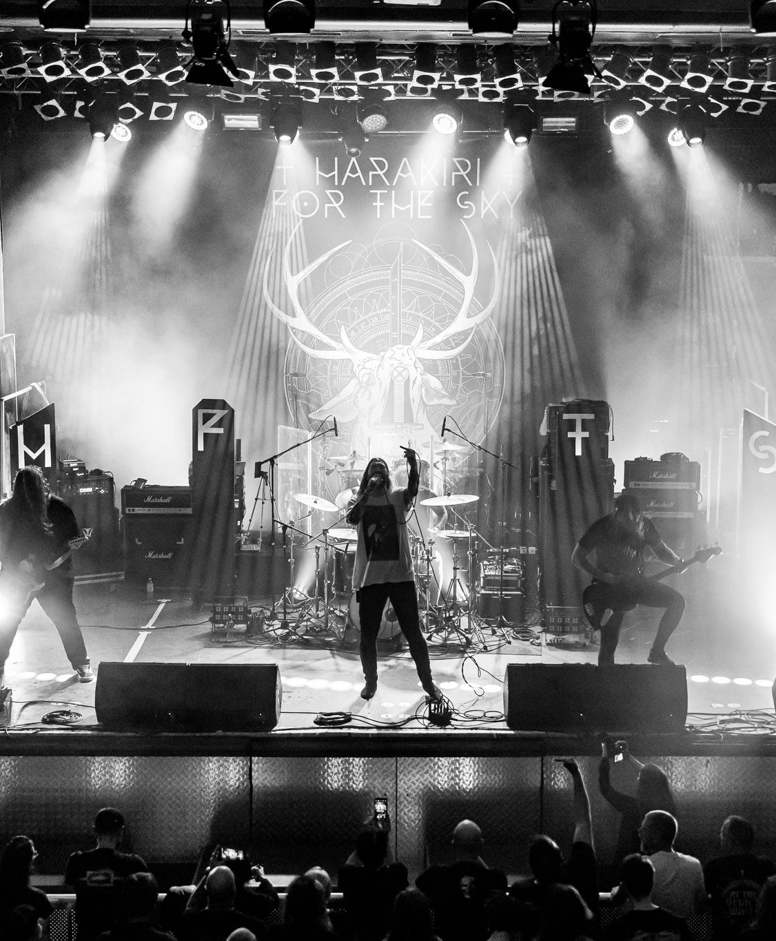 Ein wahrlich epischen Gänsehaut Auftritt legten Harakiri For The Sky als Opener hin. Die Post-Black Metalband war voll in Ihrem Element und das merkte man von Sekunde Eins an. J.J. der mit seinem screaming Gesangs an diesem Abend zumindest mich überzeugen konnte gab Vollgas. Totale Leidenschaft, die man sich bei vielen anderen Bands wünscht. M.S. der normalerweise alle Instrumente selbst einspielt wurde Live unterstützt von Chris Marrok an der Gitarre, Thomas Doring am Bass und Paul Färber an den Drums. Songs wie "I, Pallbearer" vom 2021 Album Maere durfen natürlich ebenso nicht fehlen wie "Sing for the Damage We've Done". Als auch J.J. noch im Fotograben auftauchte und die Menge einpeitschte, war auch der letzte Hannoveraner überzeugt. Eine Band die man auf jeden Fall Live sehen sollte. (Marcel)