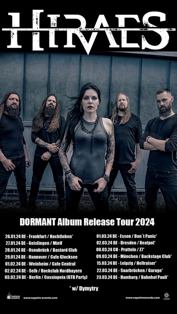 Die Melodic Death Metal-Band HIRAES aus Osnabrück/Hannover, bestehend aus ehemaligen Mitgliedern von DAWN OF DISEASE und CRITICAL MESS, präsentiert mit Spannung ihr heiß erwartetes zweites Studioalbum! Dormant läutet das neue Jahr mit voller Wucht ein und erscheint am 26. Januar 2024 über Napalm Records. Im Vergleich zu ihrem gefeierten Debütalbum "Solitary" aus dem Jahr 2021 wird beim ersten Hören von Dormant deutlich, dass HIRAES nicht nur durch ihre zahlreichen Live-Auftritte in ihrem Sound gewachsen und gereift sind, sondern offensichtlich auch mehr Zeit und kreative Energie in die Entwicklung anspruchsvollen Songwritings und in die Produktion investiert haben, um ihre unverkennbaren Trademarks weiter zu entwickeln.