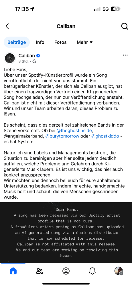 Aktuell wird Spotify bzw. bestimmte Künstleraccounts mit einem KI-generierten Song "überschwemmt".