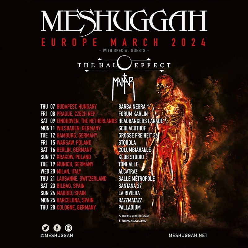Meshuggah wird im März 2024 eine monumentale Headlinertour quer durch Europa spielen und dabei insbesondere Länder auf dem europäischen Festland ansteuern, die während der ersten Etappe der „Immutable“-Tour fehlten. Bekannt für ihre bahnbrechenden Live-Performances und bewusstseinserweiternde Konzertinszenierung starten Meshuggah am 7. März in Budapest, Ungarn und erreichen ihre finale Show am 28. März in Köln, Deutschland. Auf der Tour quer durch Europa werden Meshuggah von The Halo Effect und Mantar begleitet.