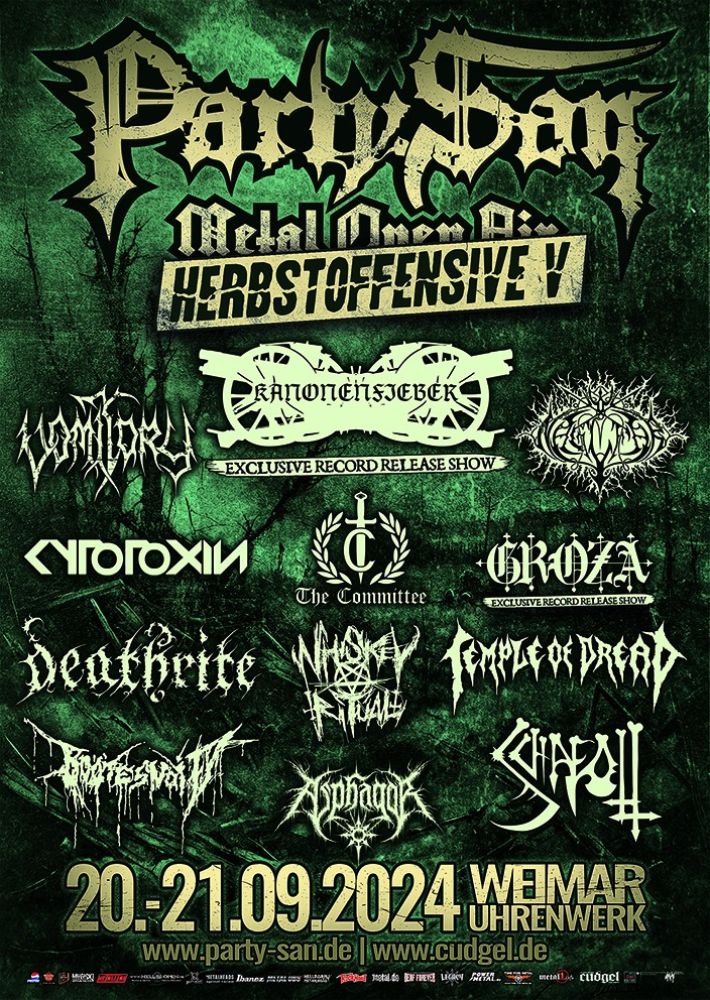 Dabei sind u. a. NAGLFAR und VOMITORY, DEATHRITE und CYTOTOXIN, während GROZA und KANONENFIEBER ihre Release-Parties im Rahmen der Herbstoffensive feiern werden.