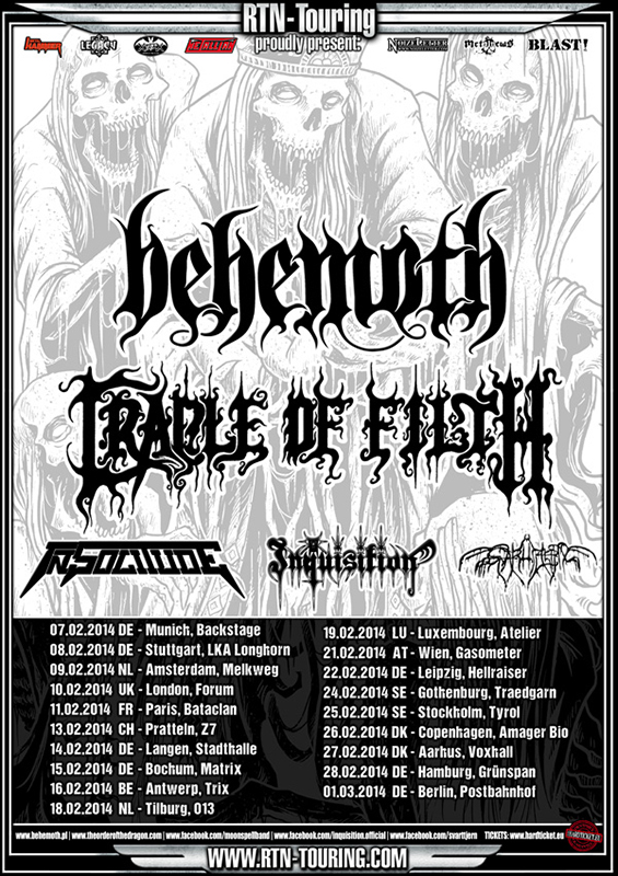 Nergal zur Headliner-Tour: "We are immensely proud to start promotion of "The Satanist" on the release date of the album in such a noble company. It's been a while since we toured Europe for the last time… The wolf pack grew stronger and hungrier and with new opus and stage production we have so much more to offer. This European crusade will be the catalyst of 2 years long tour so keep your eyes open!"