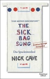 CAVEs Erlebnisse während der 2014er US-Tour zum Erfolgsalbum „Push The Sky Away von NICK CAVE AND THE BAD SEEDS sind nun endlich auch in Deutschland beim Kiepenheuer & Witsch erschienen. Im Original gibt es diese „Spucktüten“-Stories in wunderbaren limitierten Auflagen (http://www.thesickbagsong.com/#limited-edition), aber der deutsche kiwi-Verlag lässt es sich auch nicht lumpen, um aus der eigenartigen, coolen Idee etwas Schönes zu gestalten. Nicht nur, dass die Spucktüten auch hier wie echt, eben eingescannt im Original abgedruckt sind (sowohl die vordere als auch hintere Seite), die Essays gibt es in zweisprachiger Ausführung. Die ersten Seiten in Deutsch mit eben den eingescannt-abgedruckten Original-Spucktüten und ab Seite 205 gibt es die englische Version „The Sick Bag Song“.
