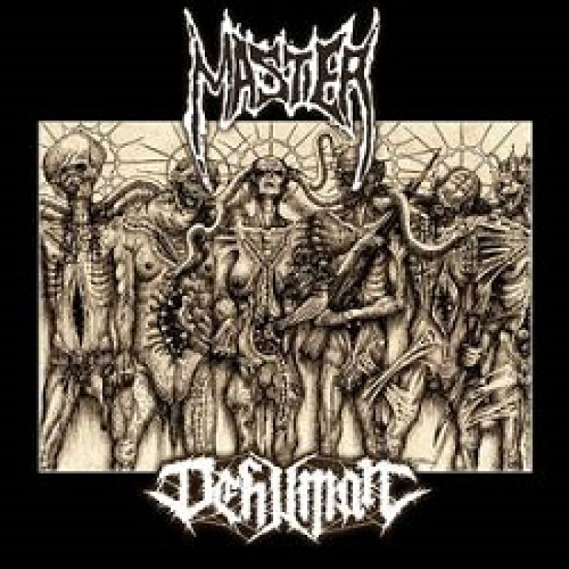 Bereits 2012 waren MASTER und DEHUMAN gemeinsam auf Tour und haben sich offensichtlich angefreundet. Nun geht es wieder zusammen on the road und das frische Xenokorp Label nimmt das als Anlass, eine Split zu veröffentlichen. Den Anfang machen MASTER mit vier Live-Songs, die im letzten Jahr in Helsinki mitgeschnitten wurden. Nun gab es mit ´Mangled Dehumanization´ im letzten Jahr bereits eine Live Scheibe von MASTER, bis auf den namensgebenden Titel gibt es bei den Songs aber keine Doppelungen. Auch das zeigt, wie viel gutes Material sich in den letzten 35 Jahren bei Speckmann und Co angesammelt hat. So gibt es vom ersten Track, den die Band geschrieben hat bis zu Material vom neuen Album Leckerbissen aus verschiedenen Schaffensphasen. Der Sound ist gut, wie immer fehlt bei den Soli die Rhythmusgitarre, die den Teppich liefert. Das aber ist das Los jeden Trios im Death Metal und lieber so als Nahrungsergänzung vom Band. Immer wieder angenehm sind Speckmanns Ansagen. Während andere (pseudo) adrenlinschwanger rumschreien, grummelt er irgendetwas ins Mikro, um dann die Musik sprechen zu lassen. Gut so. Dann übernehmen DEHUMAN. Die haben neben MASTER auch mit SADISTIC INTENT getourt und trotz wesentlich jüngerer Bandhistorie bewiesen, dass sie wissen wie es geht. Die Belgier liefern keine klassischen Live-Aufnahmen, sondern haben drei Tracks im Studio noch mal live eingehämmert. Neben je einem Song aus den beiden bisher erschienen Alben gibt es auch einen Vorgucker, bzw. -hörer, auf das nächste Album. ´Morbid Sun´ macht Lust auf´s neue Album auf dem es erfreulicherweise wohl keine stilistischen Experimente geben wird.