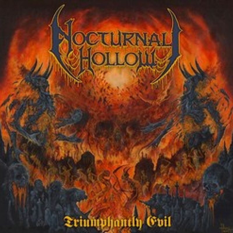 Eine venezolanische Note kann man dem Duo allerdings nicht attestieren, denn auf „Triumphantly Evil“ regiert neben dem HM-2 auch die Vorliebe für den amerikanischen Death Metal. Insofern stellt der Sound der Band den Brückenschlag zwischen zwei prägenden Stilrichtungen dar. Das Songmaterial auf „Triumphantly Evil“ ist ausgesprochen homogen und die Songs fließen regelrecht ineinander. Dabei begeistern mich vor allem kraftvolle Riffs wie in „Through The Haze Of Death“ und die langsamen drückenden Parts in den verschiedenen Songs (z. B. „Voices Comes From The Night“ oder „Bund To The Gore“). Diese werden durch schnelle Passagen immer wieder eindrucksvoll in Szene gesetzt. Die Truppe entwickelt sowohl mit den Vocals als auch mit den Leadgitarren teilweise richtig eingängige Melodie, was den Sound der Band gegenüber dem Heer an Mitstreitern abhebt: Die Songs haben Wiedererkennungswert. Fazit: Oldschool Death kann auch 2021 noch richtig gut klingen und kann dabei ohne modernen Schnick-Schnack auskommen. NOCTURNAL HOLLOW beweisen mit „Triumphantly Evil“, dass ein gelungenes Gesamtpaket aus Songs, Sound und Artwork auch im 21. Jahrhundert noch begeistern kann. Hörenswerter Geheimtipp.