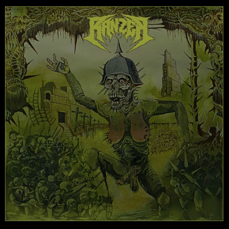 Musikalisch treffen Asselpunk und subtile Thrash Metal– sowie Melodic-Death-Einflüsse aufeinander, um sich in einem Crust-Gewitter zu entladen. Sänger Kurt, der auch für´s Freibier verantworlich ist, brüllt, röhrt und keift darüber jenes Gift und jene Galle, die der toxisch-grüne Cover-Held, der von RANZER durch Geist und Hände von Thomas “Necromaniac” Westphal in die Artwork-Schlacht geworfen wurde, erleiden muss(te). “Elend”, “Schlagwort”, “Zelle an Zelle”, “Zahnfee” und “Schwarze Galeere” sprechen eine deutliche Sprache, RANZER haben es nicht nötig, sich auch nur im Ansatz irgendwo anzbiedern. Und so hat man das Ding, das bereits im Februar online veröffentlicht wurde, während die physischen Formate aktuell noch auf sich warten lassen, mal eben in vier Stunden live eingeprügelt. Kann man mal machen, vor allem wenn dabei 15 so kurzweilige Minuten herauskommen, die neben Durst auch Lust auf das nächste Konzert machen.